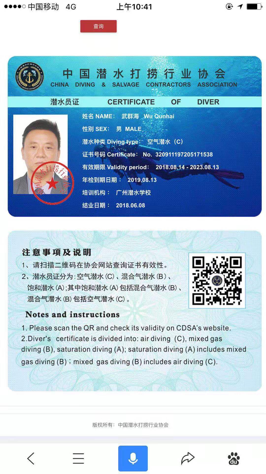 公司致力于江、河、湖、海、水庫等水下工程作業,具有良好的企業形象和強勁的技術優勢,多次出色完成各類水下工程任務如:水下打撈,潛水作業,水下切割,水下拆除,水下焊接,水下安裝,沉井施工等......,與中交二航局、三航局,交通部大橋局,華能電廠、中鐵十七局等單位是長期合作伙伴,憑借過硬的技術,優質、高效、安全的業績贏得了廣大客戶的好評?! ?/p>